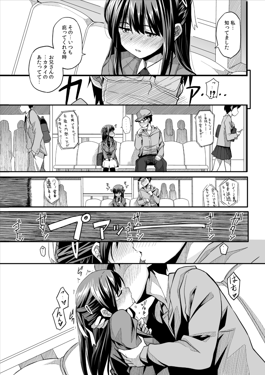 ミイラ取りがミイラになってしまうエロ漫画。いつも通勤中に見かける巨乳JK。見るからに大人しくて痴漢のターゲットになりやすい感じだ。男は正義のヒーローを気取ってかずっとその女の子を痴漢から守り続けていた。痴漢されている彼女を痴漢の魔の手から引きはがし抱き寄せる。そんなことは日常茶飯事だった。しかし男はついに魔が差してしまう。自分も彼女の体を堪能したい。あのおっぱいを揉みたい、ケツに触りたい。そして男は彼女にバレないように変装をして痴漢することを決意する…。