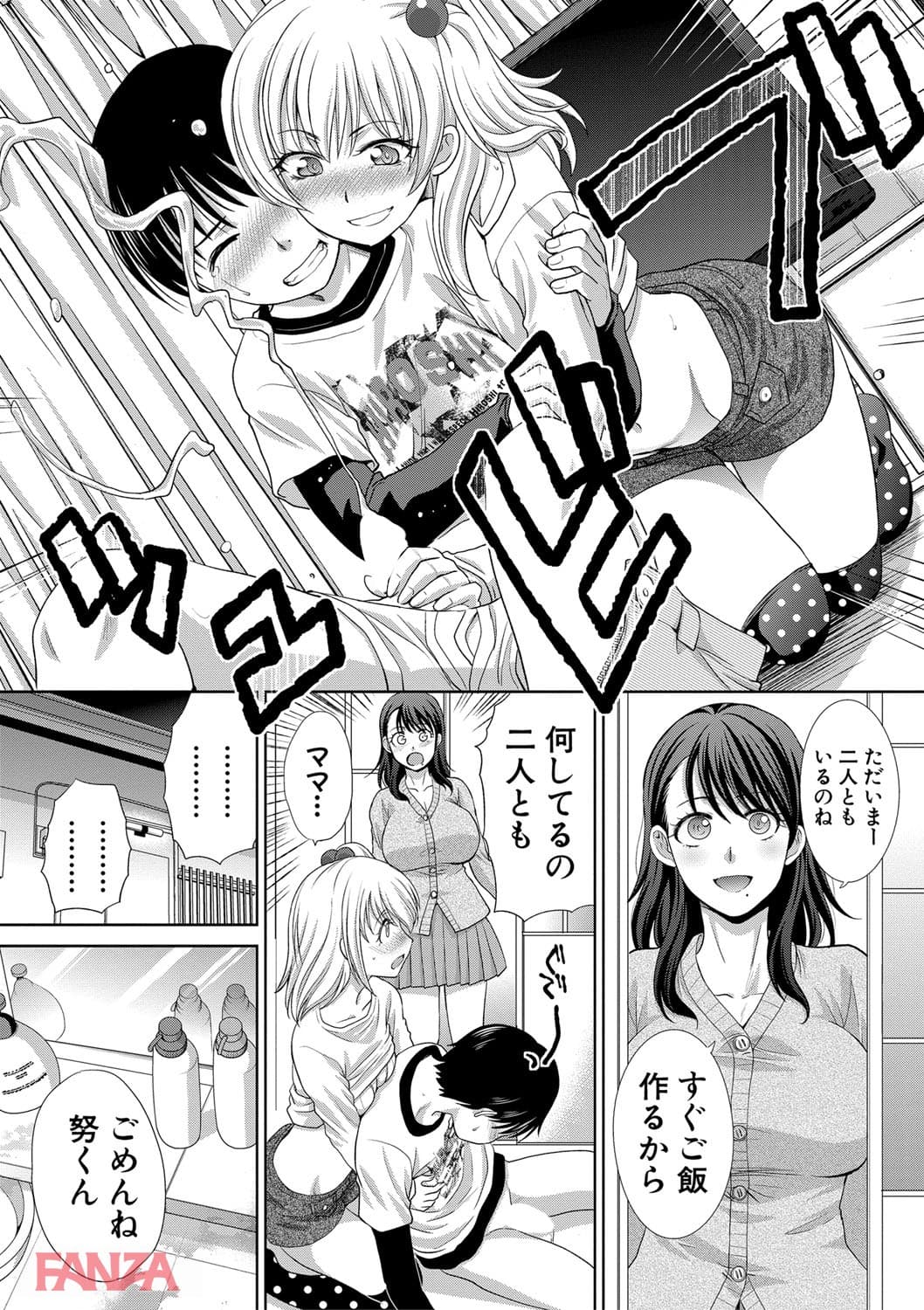 ショタ男の努が娘とエッチな事をしている現場を目撃してしまったおばさん。あんなに勢いよく精子を出すなんて…。不覚にも盛ってしまったおばさん。私もあのちんちんが欲しい…。そして努と一緒に入ってショタチンポを食べちゃいます。おばさんが動いてあげる!とショタチンポに跨って騎乗位で腰を振る。努は歯止めが効かなくなりおばさんのマンコに中出ししてしまうのだった。
