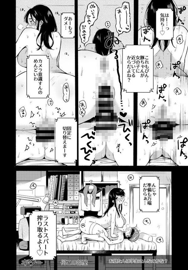 このパイズリに何分間耐えられるだろうか。ナース服を着たお姉さんのライブチャットエロ配信。男役は何ともひ弱なM男。S女にとっては一番こういう男が都合が良い。目隠し拘束したM男のチンポをじゅるじゅるしゃぶるエロコスナース。一滴残らずザーメンを吸い上げる。そしておまんこを使ってチンポシゴき。たっぷり中出しフィニッシュされてご満悦。こんな配信をするだけで14万円も稼げるんだからまともに働くなんて馬鹿らしくてやってられなくなる。さらにこの女と男の関係はなんと姉弟だということが判明する。
