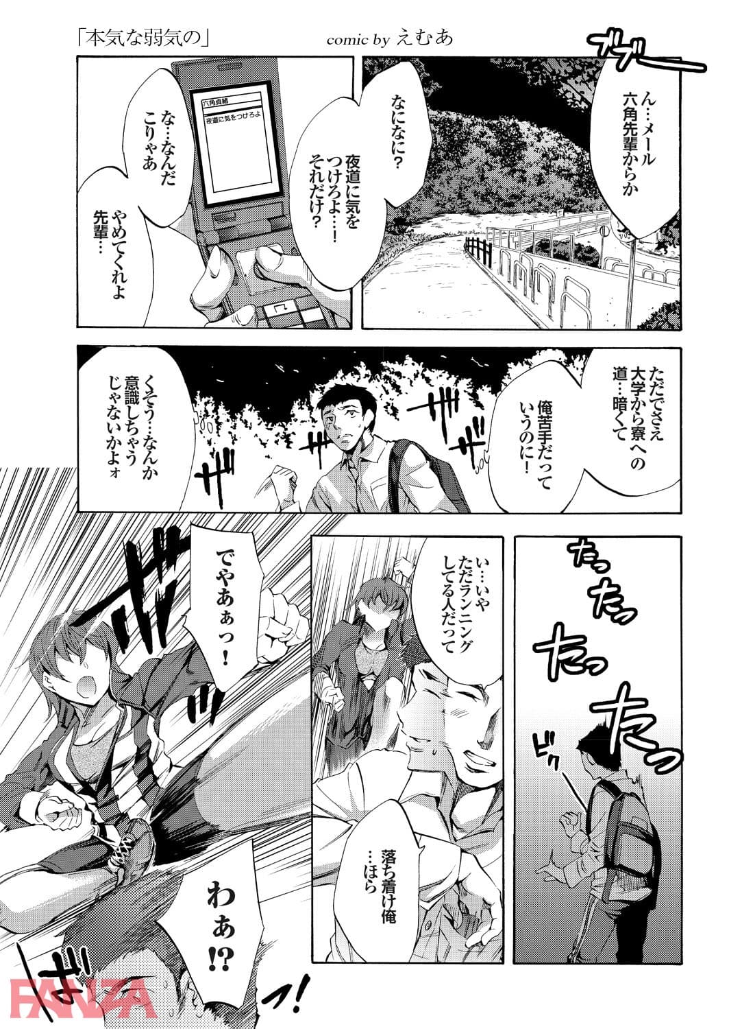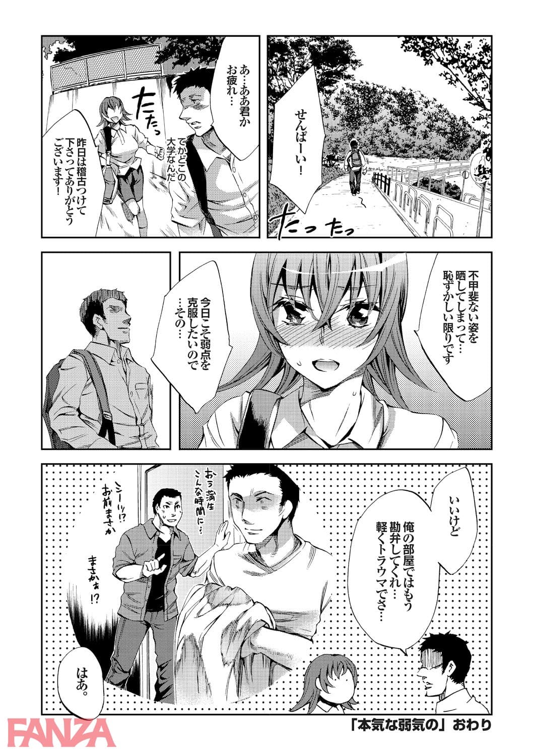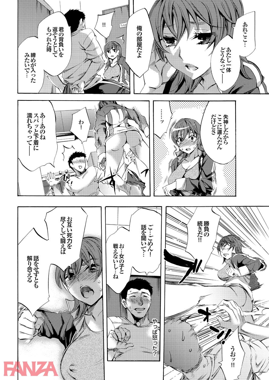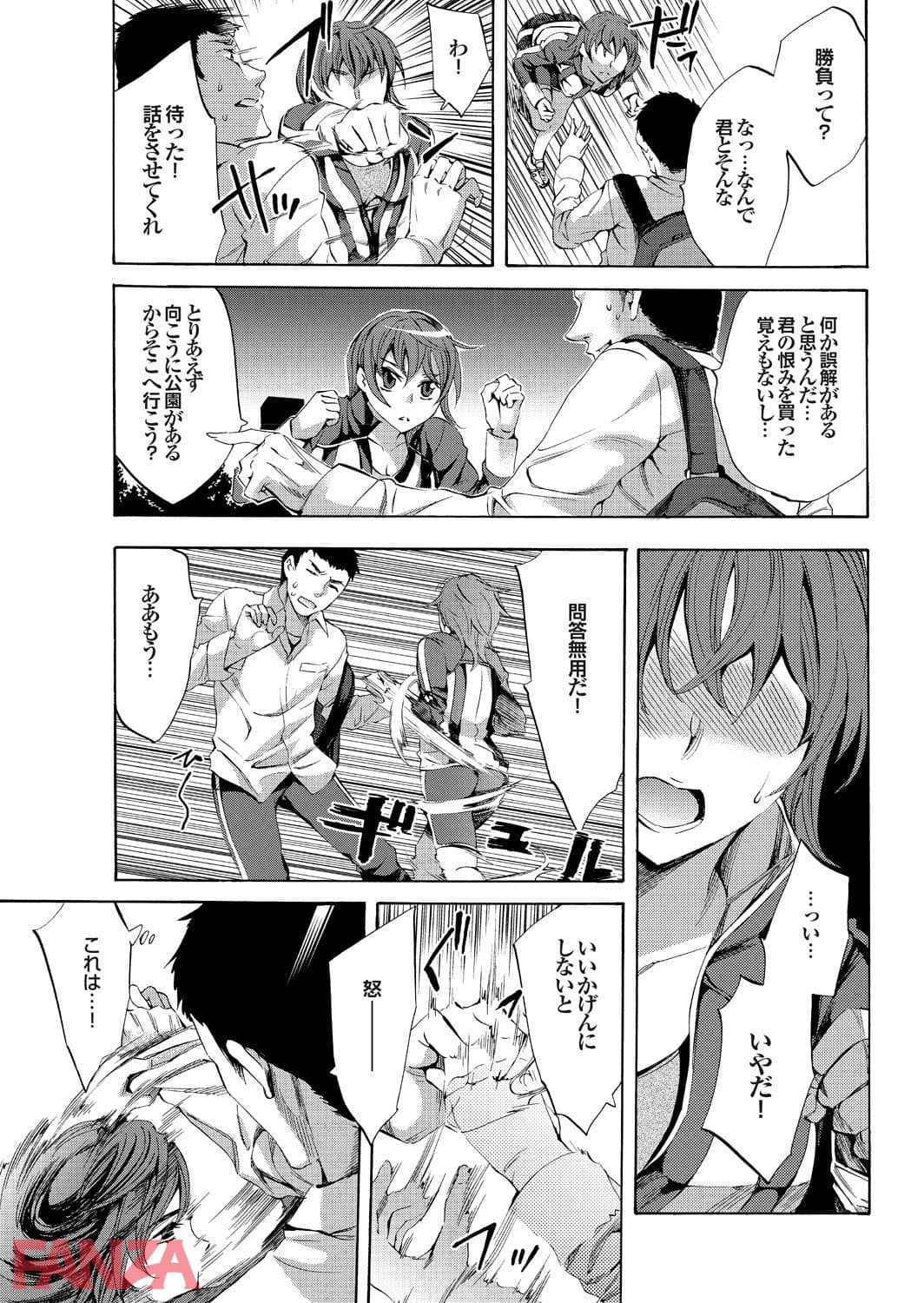 女の子に闇討ちと称して決闘を挑まれた男。男はもちろん応戦してふいな拍子にその女の子を失神させてしまう。仕方がないと家に運んで体を見るとなかなか良い乳をしている。しかもスパッツは濡れていて失神と同時に失禁もしてしまったらしい。このままではいけないとスパッツを脱がせると女の子が起き上がりまた勝負を挑まれる。そのまま結局男に負けてチンポをハメられてしまう女の子でしたとさ。