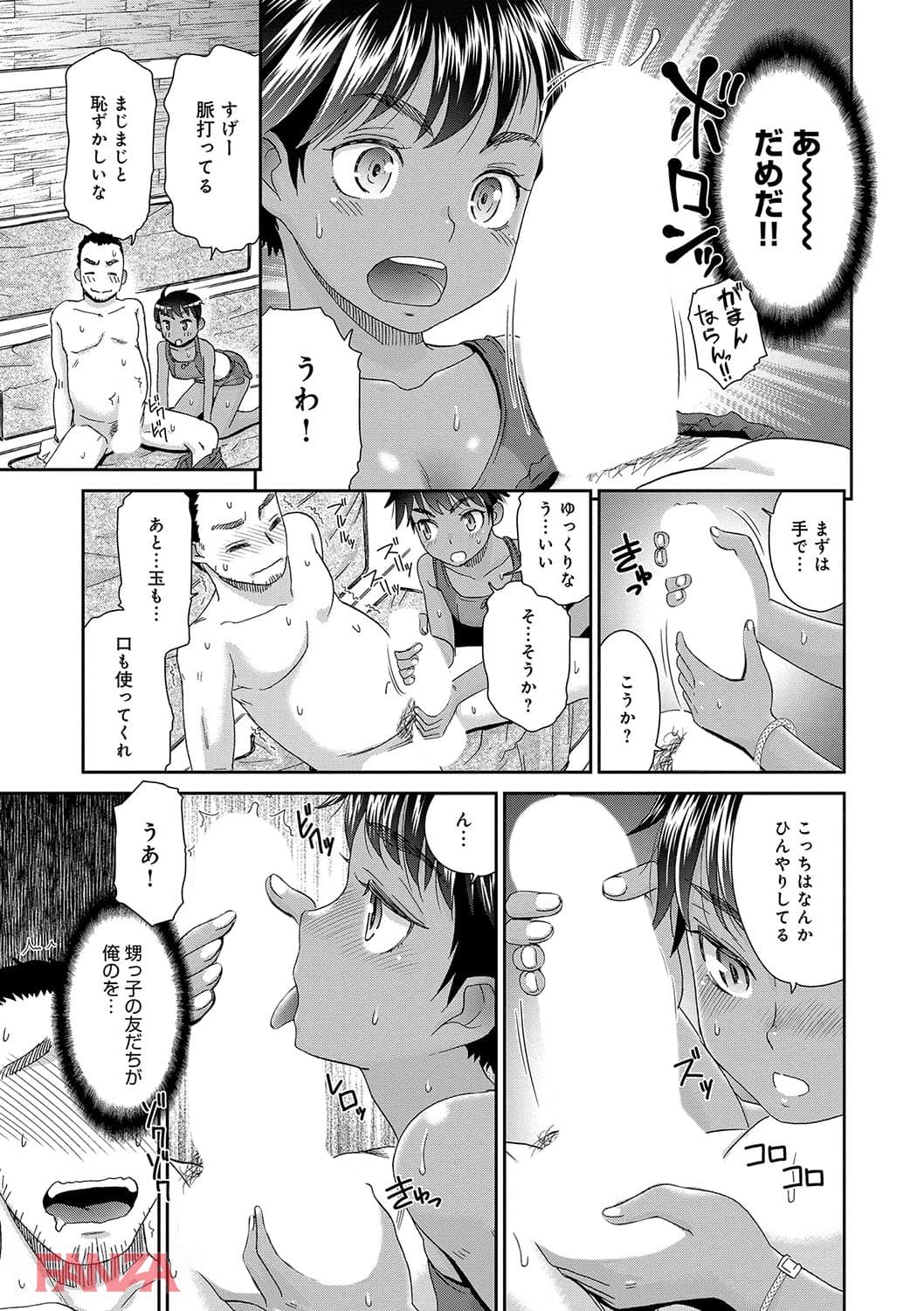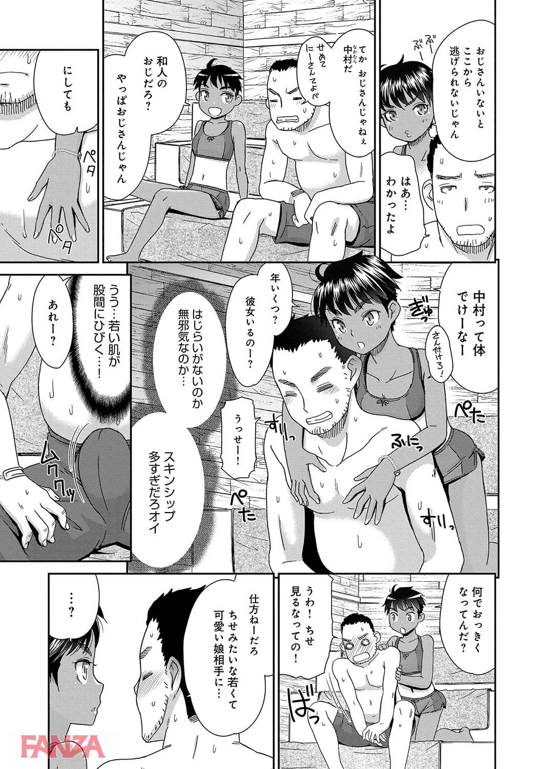 かくれんぼ中のロリ娘。このロリ娘は甥っ子の友達だ。隠れる場所がないのでとりあえずおんぶして一緒にサウナに隠れることに。するとおじさんのチンポがみるみる勃起。こうさせてしまったのは私の責任ということでしっかりぬいてもらうことに。フェラチオでどっぷどっぷ口内射精してパイパンマンコに中出し。ボーイッシュ系の女の子もなかなか良いですね。