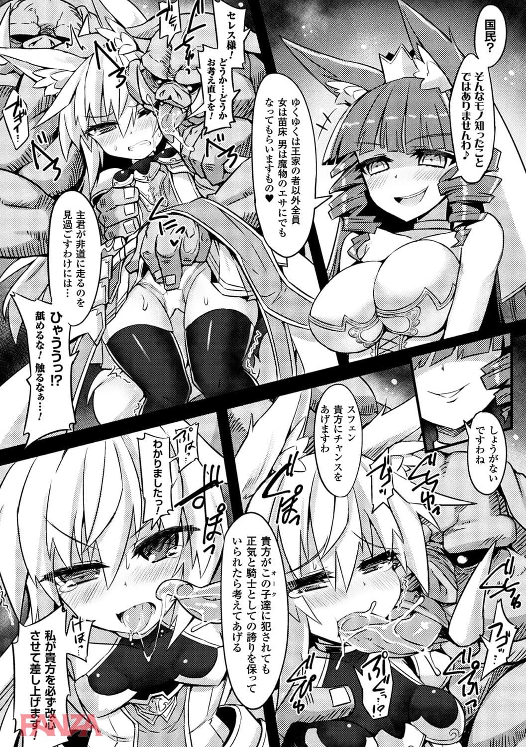 守護岸スフェン只今参上しました!セレス王女を守るべく参上した女騎士。しかし、なんと仕えていた王女に裏切られてしまう。私の矛は一体何のために存在していたのか…王女を守るためではなかったのか…。そして王女が指揮をとるオークに犯されてしまう女騎士。大量に中出しされて腹ボテにされてしまうのだった…。
