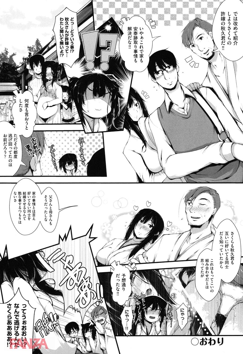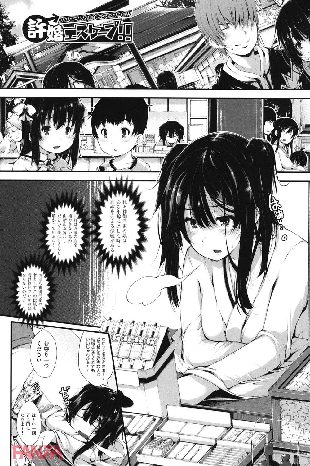 許嫁という制度は一体誰が考えついたのか。これによって好きな人と結婚ができなかった女の子がどれほどいただろう。どうせどうでもいい人と結婚するくらいなら一度は好きな人としてみたい。神社でオナニーする美少女巫女の目の前に現れたのは初恋の人だった。二人は神聖なる神社でセックスをする。処女を捧げた美少女巫女。最後は生のおまんこに中出し。
