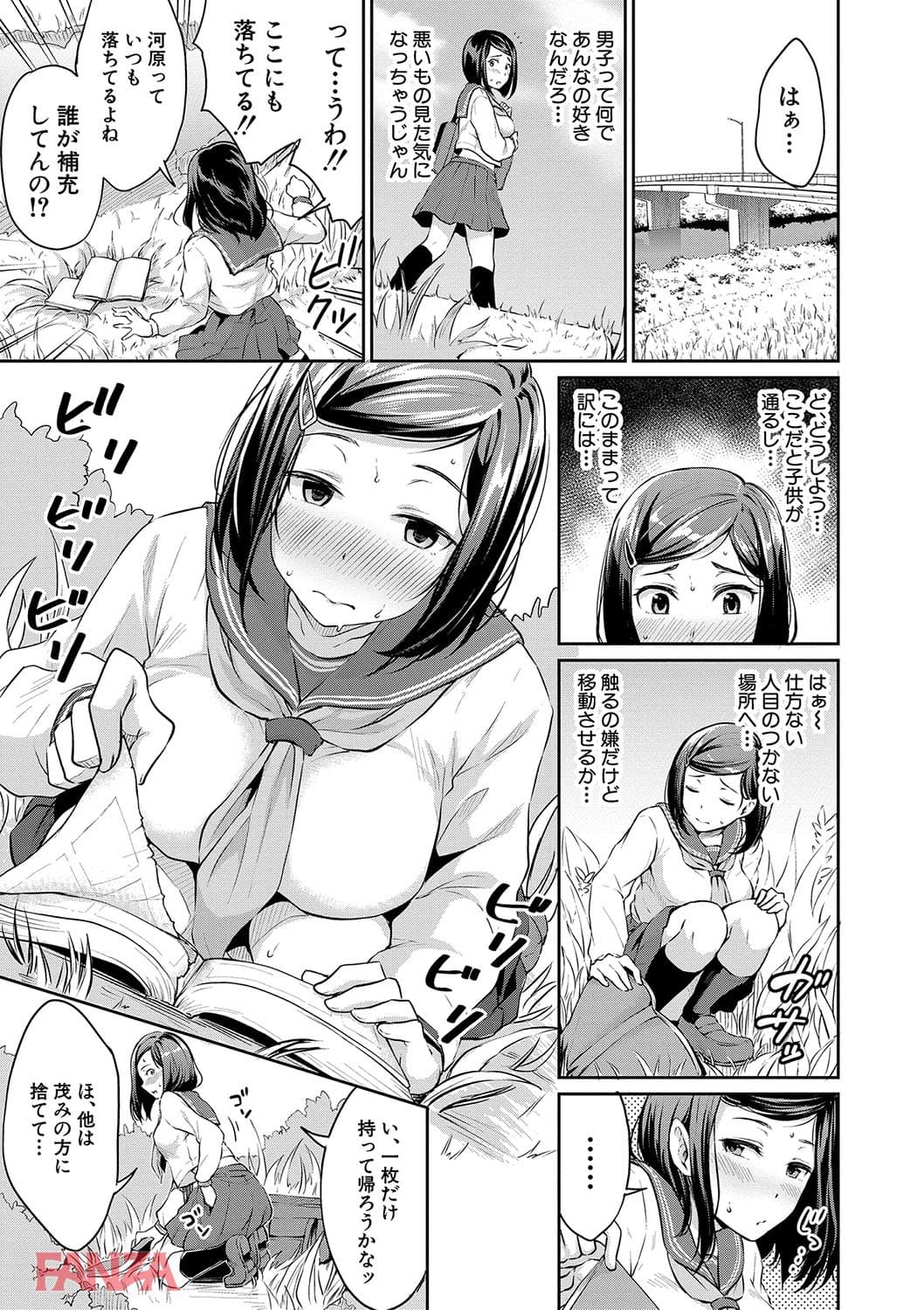 JKくらいの年齢が一番エッチに興味が出るお年頃。思春期真っ盛りのようですね。澄ましたあのJKも個々の中ではチンポのことを考えているもんなんですよ。現役時代にはそんなの微塵も思ってなかったけど、セフレの女に聞いたら女子はだいたいそうだって言ってたのでまあチンポの事で頭がいっぱいなのはほぼほぼ確定でしょう。この委員長は河原で拾ったエロ本をオカズにオナニーしています。そしてそれが男子生徒にバレてしまいバス停で青姦エッチ!