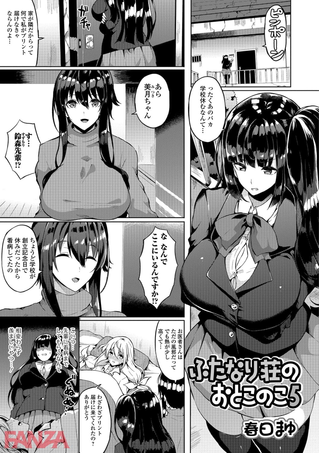 風邪をひいてしまった男の子に学校のプリントを届けに来た爆乳JK。憧れの先輩と遭遇してその先輩と看病を代わることに。女装男子の胸ぐらをつかむと汗をびっしょりかいていた。拭いてあげるから脱ぎなさいっ!と女装男子の体を拭いているとふたなりチンポが勃起してしまう。そのまま女装男子に手コキされてザーメンをぶちまけてしまうふたなり爆乳JK。その後当然セックスする流れになって…。