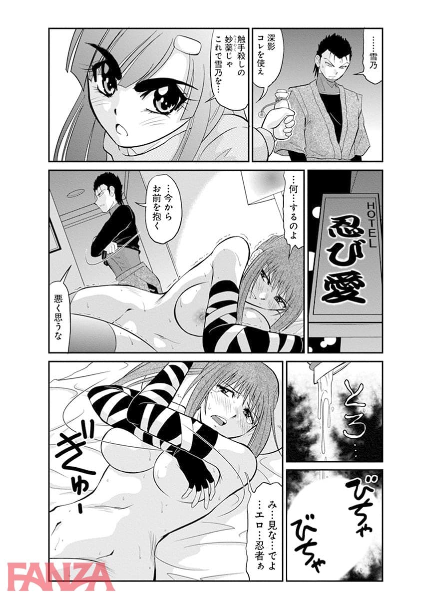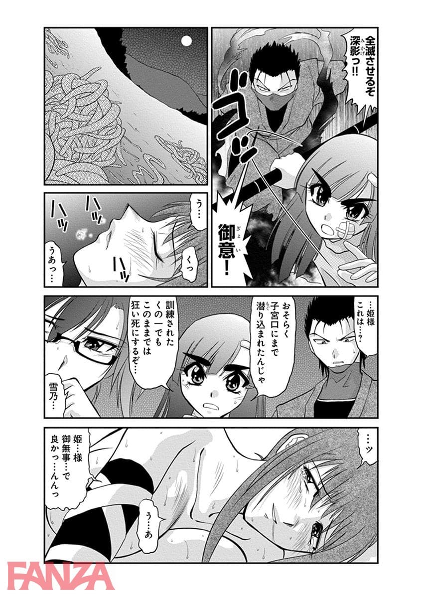 姫様直属のくノ一女忍者。両手を拘束されて宙吊りになった状態で拷問される。拷問にも必死で耐えるくノ一。流石は姫様直属のくノ一である。しかし、拷問の苦痛には耐えられるが、快楽への耐性はなかったようだ。触手の快楽でイキまくるくノ一。まさか子宮口まで犯されてしまうとは。なんとか救出されるも子宮口まで触手に浸食されていたためそれを取り除かなければいけない。さてさてどうするか…。
